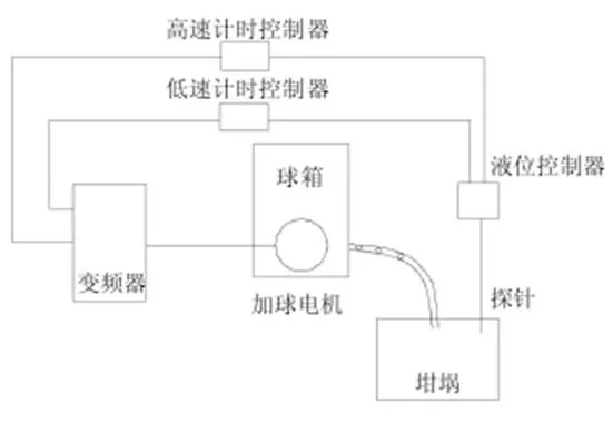 2.1.1.3加球控制 在目前的生產(chǎn)中,坩堝拉絲工藝的間斷式加球控制是在正常生產(chǎn)中影響溫度最主要的因素之一。而周期式加球控制就會打破系統(tǒng)中溫度的平衡狀態(tài),導(dǎo)致系統(tǒng)內(nèi)的溫度平衡被一次次打破而又一次次被重新調(diào)節(jié),使得系統(tǒng)內(nèi)的溫度波動幅度較大,溫度精度很難控制。關(guān)于怎樣解決和改善間斷加球所出現(xiàn)的問題,成為連續(xù)加球是改善和提高系統(tǒng)穩(wěn)定性的另一個重要的一面。因?yàn)槿绻馗G液體控制這種方式花費(fèi)較多,在日常的生產(chǎn)生活中得不到推廣,所以人們經(jīng)過努力創(chuàng)新,提出了一種新的方法,在探針測液面的前提下,將加球方式改為連續(xù)非勻速加球。,就可以克服原系統(tǒng)的弊端。在拉絲時,為了降低爐內(nèi)的氣溫波動,改變探針和液面的接觸狀態(tài)來調(diào)節(jié)加球的速度。通過輸出計(jì)的報警保護(hù),確保加球的過程安全可靠。準(zhǔn)確合適的高低速調(diào)節(jié)能夠確保液體保持很小的波動。通過這些改造,保證了這個系統(tǒng)在恒壓、恒流的控制方式之下也能夠使得高支紗支數(shù)波動在很小的范圍之內(nèi)。